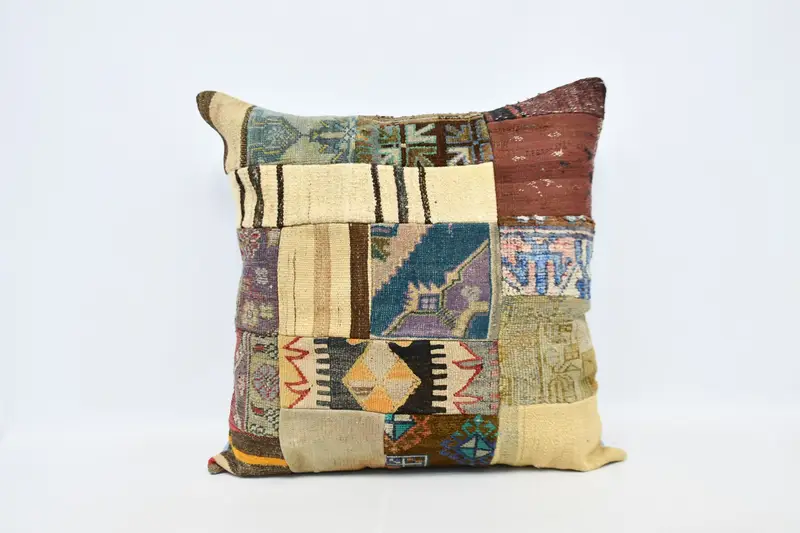 Bej ve Bronz İşlemeli Kırlent, Çok Yönlü Kare Kırlent