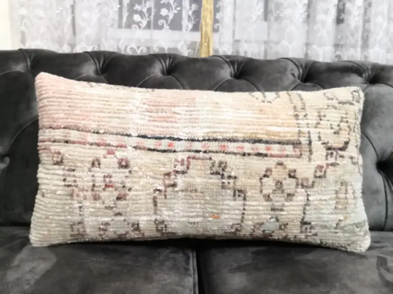 Geometrik Desenli Gri Yün Kırlent, El Yapımı Dikdörtgen Yastık