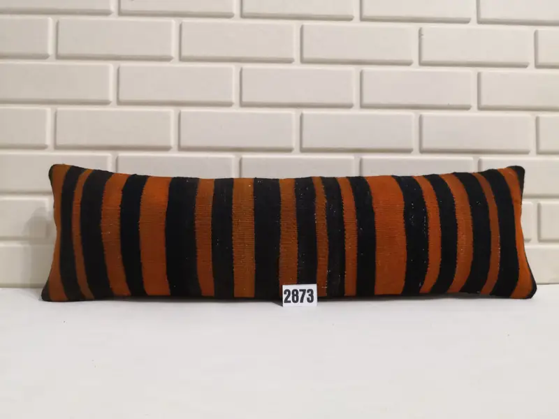 El Yapımı Çizgili Yün Atma Yastık, 8x28 İnç Vintage Dikdörtgen Yastık