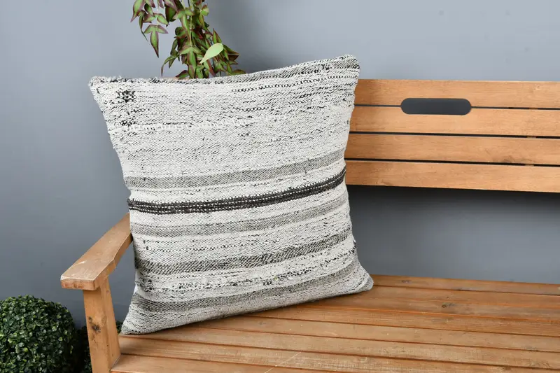 Bej & Kahverengi Çizgili Kırlent, Vintage İşlemeli Kırlent