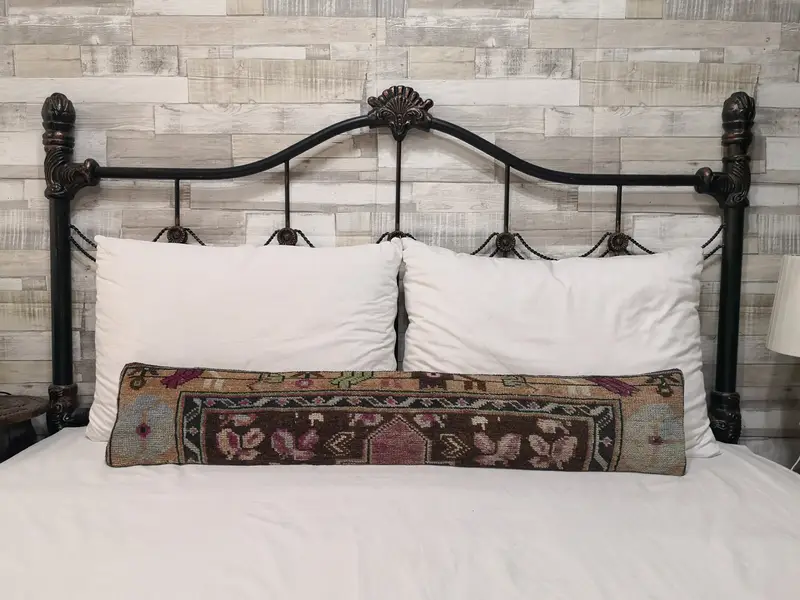 İşlemeli Kahverengi & Gri Geometrik Yün Kırlent, El Yapımı Kırlent