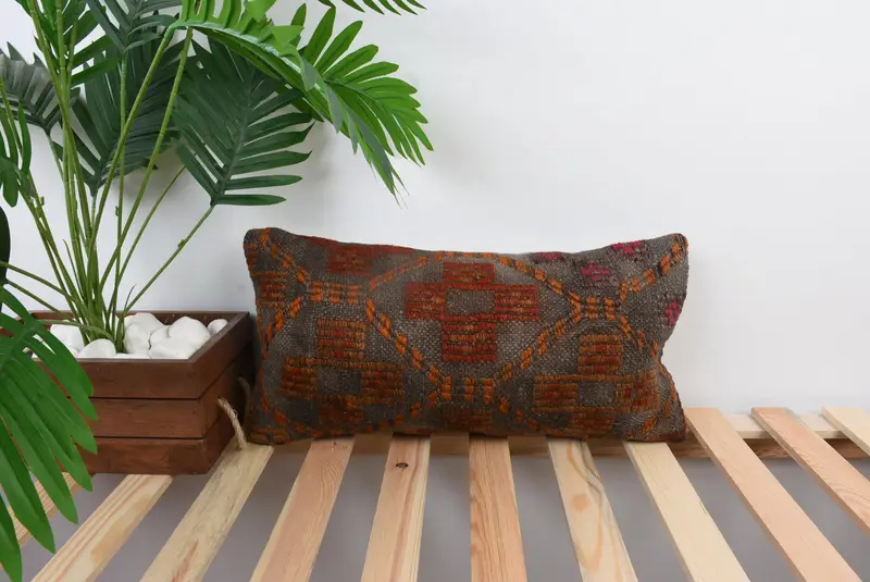 El Yapımı Güneybatı Nakışlı Yastık, 10x20 Kırmızı Keten Kırlent