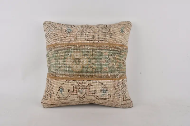 Kahverengi & Bej Patchwork Kırlent, İşlemeli Vintage Yastık