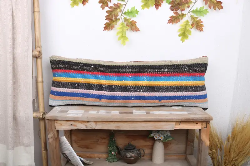 Mor & Bronz Çizgili Kırlent, El Yapımı Keten Kırlent