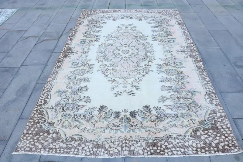Bej Ombré Halı, 5,5x8,6 ft Zarif Bej-Kahverengi Dekor