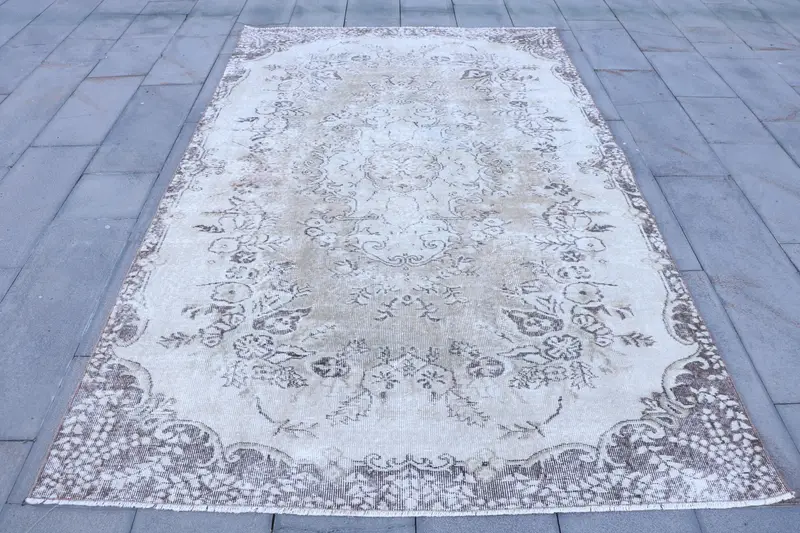 Zarif Bej Halı, 5,5x8,8 ft Çiçek ve Paisley Tasarım