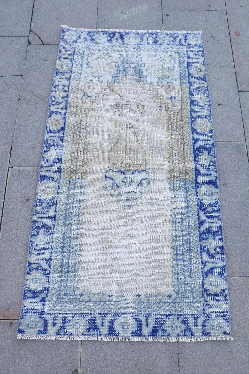 2,2x4,2 ft Güneybatı Halısı, Bej ve Mavi Vurgulu