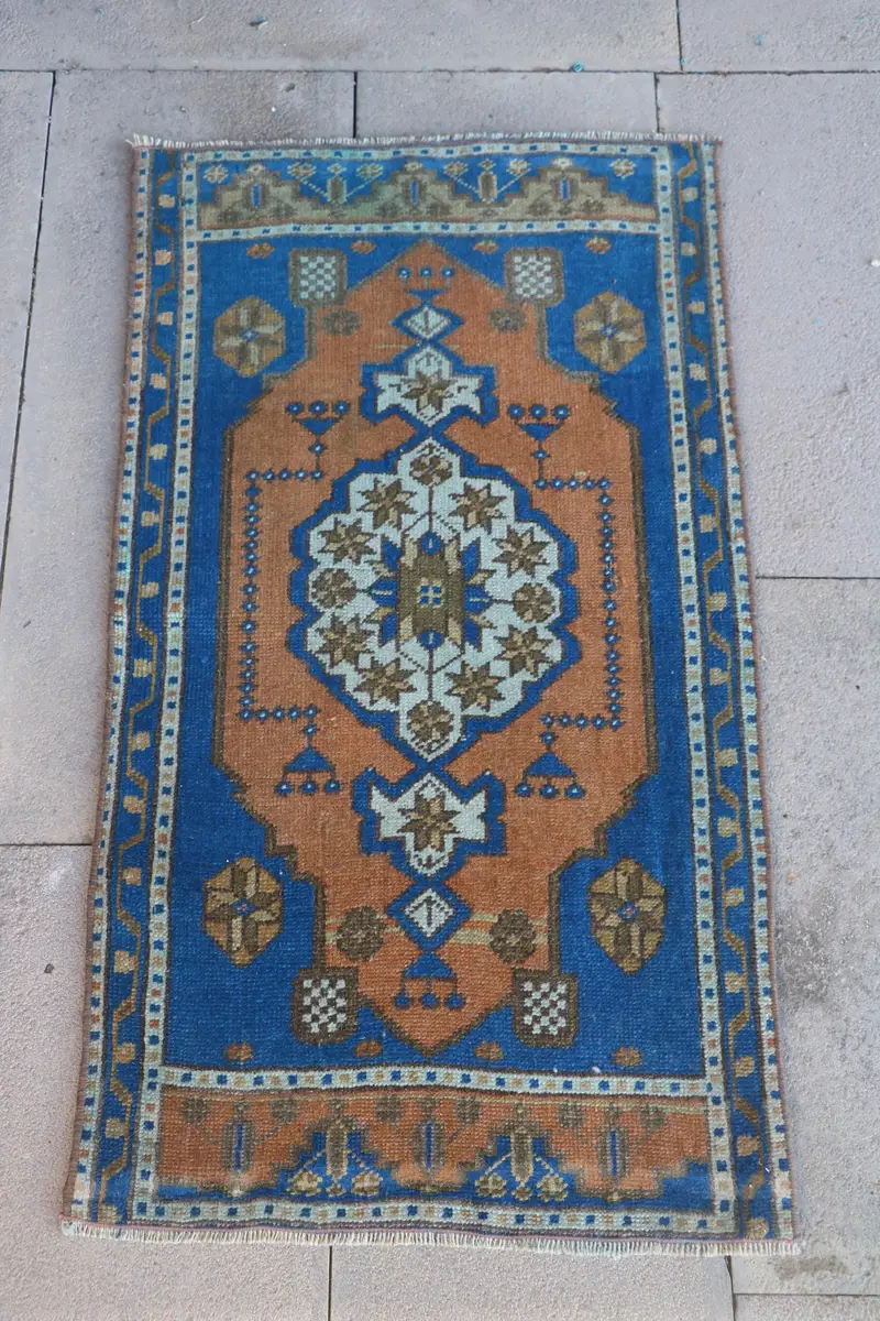 Mavi Soyut Halı, 1,8x3,3 ft Mavi ve Kahverengi Vurgulu