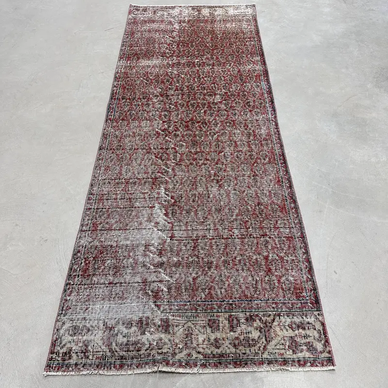 Kırmızı İkat Halı, 3,1x8,7 ft Mavi Desenli