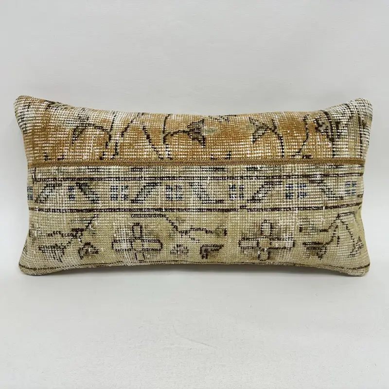 Bej ve Turuncu Nakışlı Patchwork Kırlent, El Yapımı Vintage Yastık
