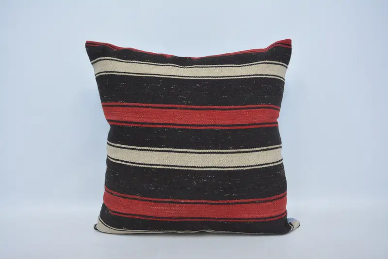 Kırmızı Çizgili Kenevir Kırlent, 28x28 Nakışlı Kırlent