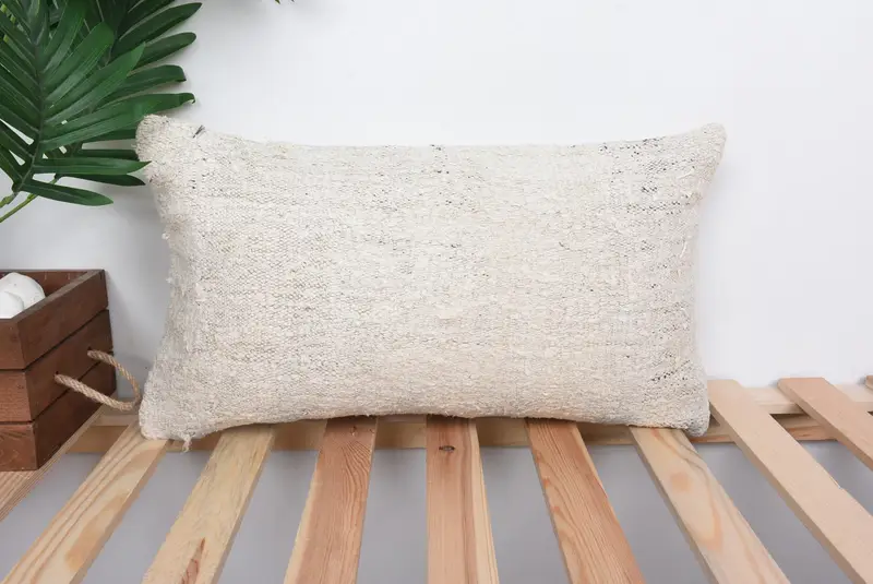 Bej Güneybatı İşlemeli Kırlent, El Yapımı Dikdörtgen Yastık