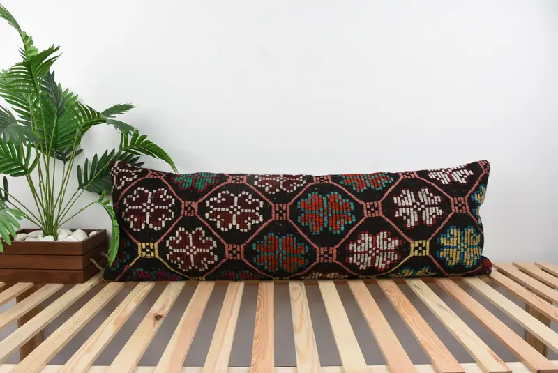 Kahverengi ve Mor İşlemeli Kırlent, Güneybatı El Yapımı Yastık
