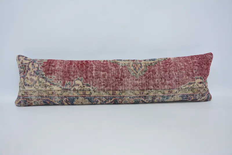 Kırmızı Güneybatı Nakışlı Kırlent, 12x42 Vintage Kenevir Örtü