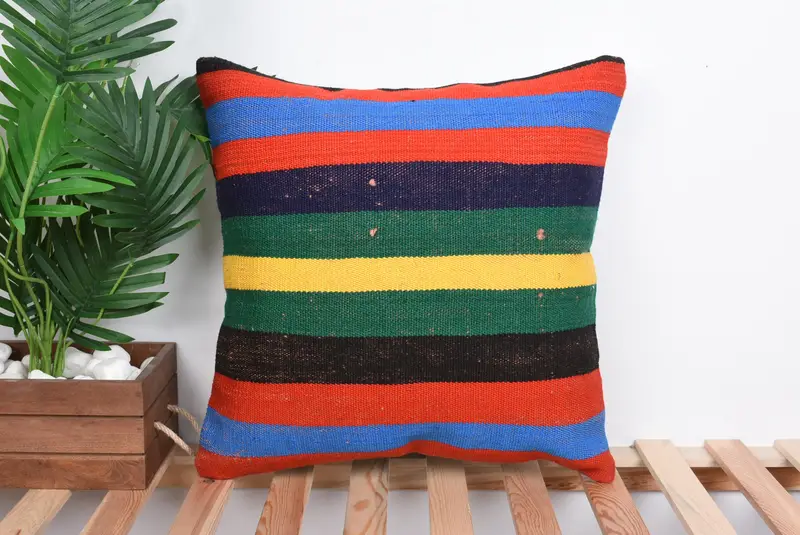 Kırmızı Bronz Çizgili Kırlent, 20x20 Nakışlı Kırlent