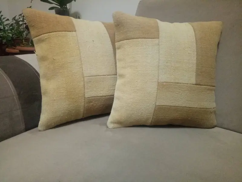 İşlemeli Patchwork Kırlent, Bej ve Beyaz Pamuklu Yastık