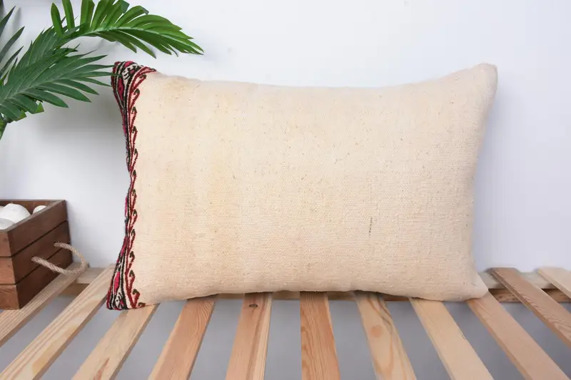 El Yapımı Çizgili Kırlent, Vintage İşlemeli Dikdörtgen Yastık