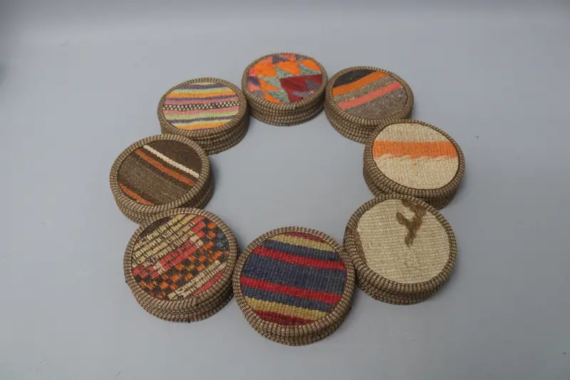 Bohem Yuvarlak Bardak Altlığı, Benzersiz Kilim Desen Bardak Altlığı