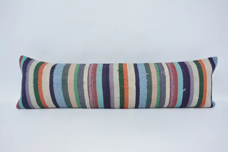 Mavi & Beyaz Çizgili Kırlent, Vintage İşlemeli Yastık