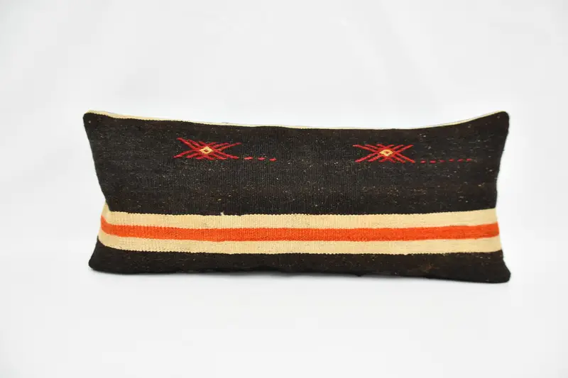 El Yapımı Kahverengi & Turuncu Kırlent, Vintage Desenli Dikdörtgen Kırlent