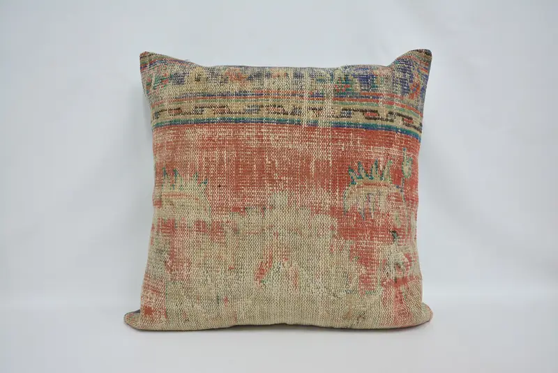 Kırmızı Kilim Kırlent, 32x32 İşlemeli, Vintage Charmlı Kırlent