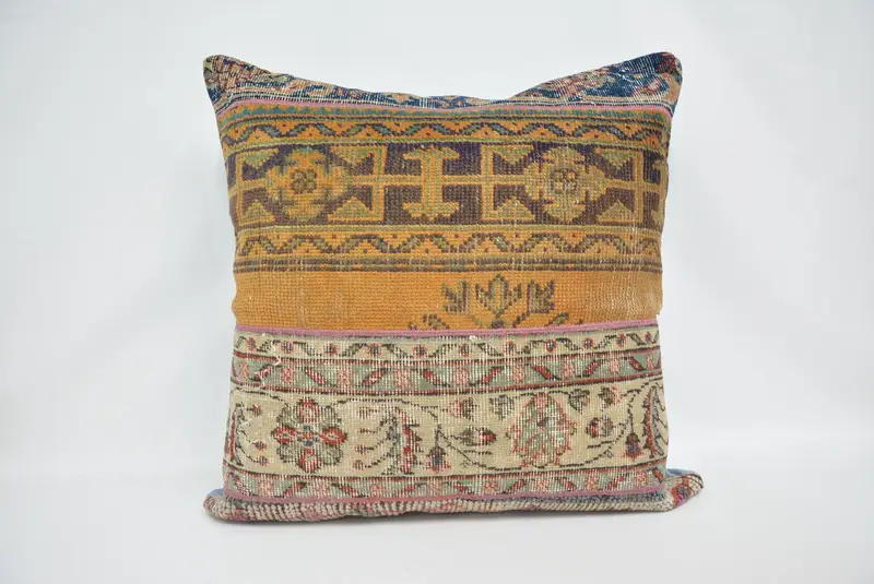 Mavi & Turuncu Çizgili Kenevir Kırlent, 32x32 Vintage Kırlent