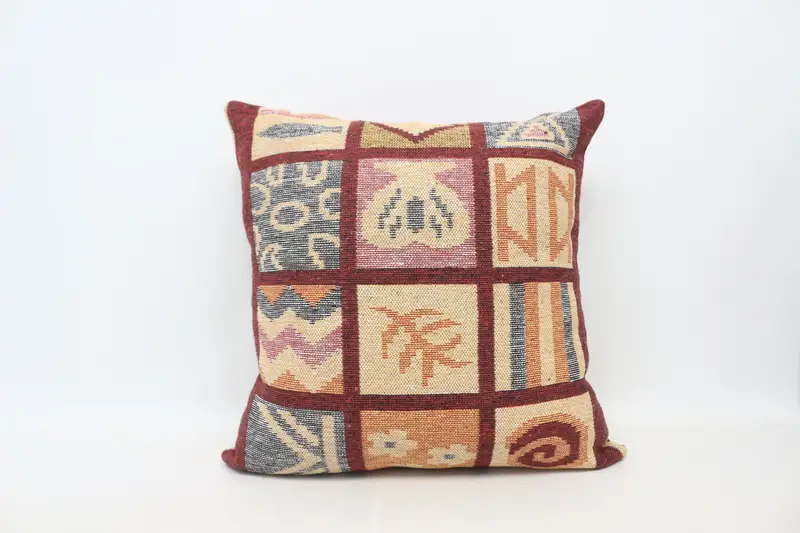 Bej ve Kırmızı İşlemeli Kırlent, Çok Yönlü Ev Dekoru Yastık