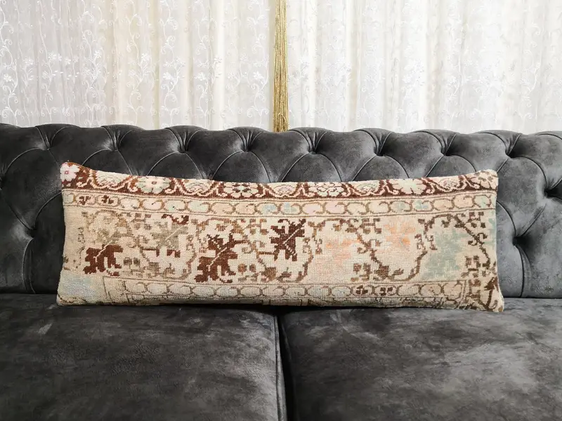 El Yapımı Yün Kırlent, Kahverengi & Gri Geometrik Dikdörtgen Yastık