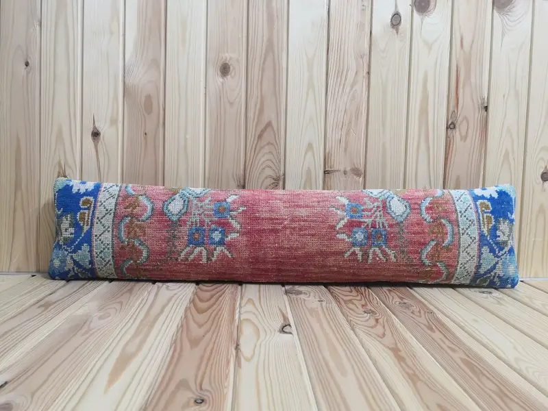 El İşi Kırmızı Yün Kırlent, 8x36 İnç Çiçek Yastık