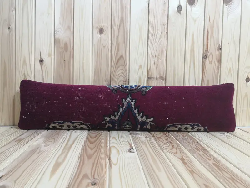 El Yapımı Yün Atma Yastığı, Dikdörtgen Geometrik Yastık, 8x36 inç