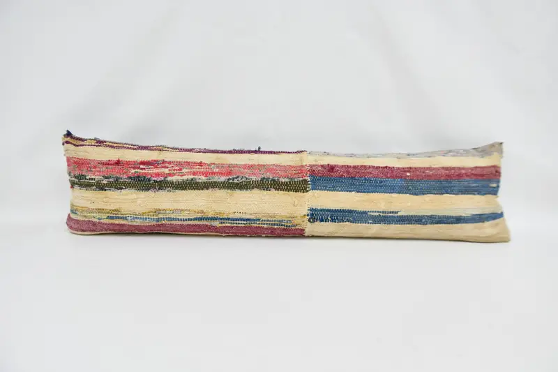 Bej Çizgili Kırlent Kılıfı, Vintage İşlemeli Kırlent