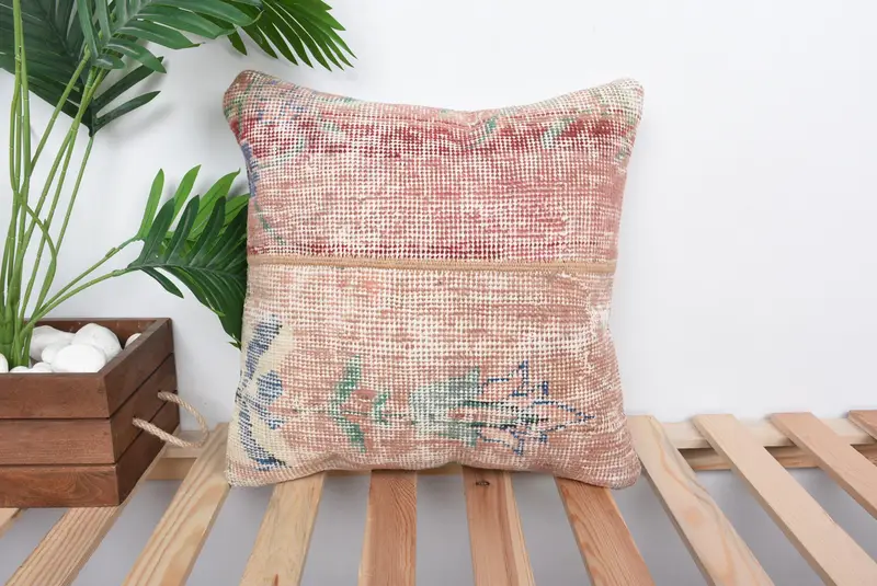 Kırmızı & Bronz Patchwork Kırlent, 16x16 Nakışlı Kırlent