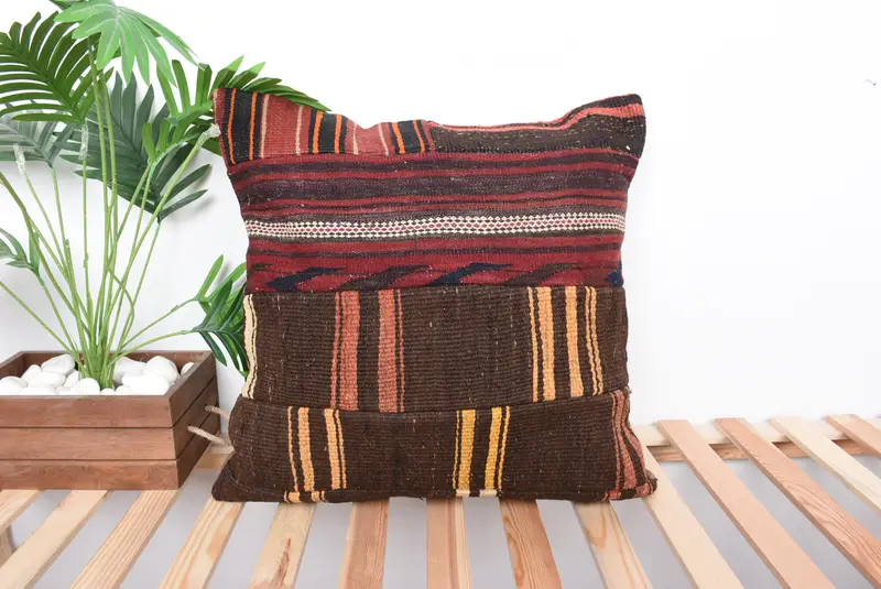 Kırmızı & Kahverengi Patchwork Kırlent, 22x22 Nakışlı Kırlent