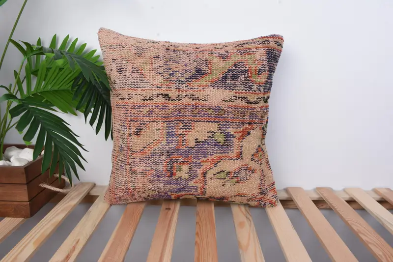 El Yapımı İşlemeli Kırlent, Güneybatı Moru ve Bej Keten Yastık