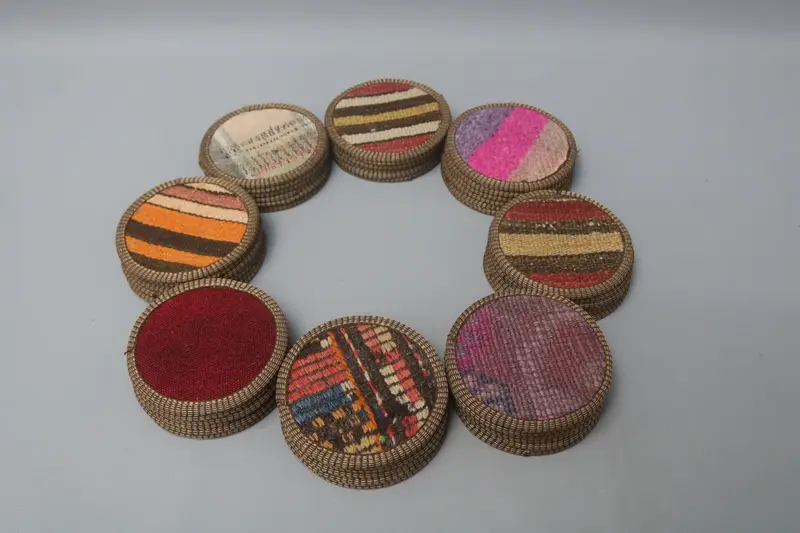 Bohem Yuvarlak Bardak Altlığı, Kaymaz Yün ve Deri Bardak Altlığı