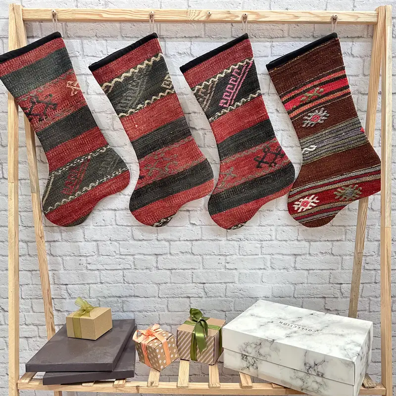 Gri ve Pembe Noel Süs Çorabı, 8 İnç Geniş Şenlik Çorabı