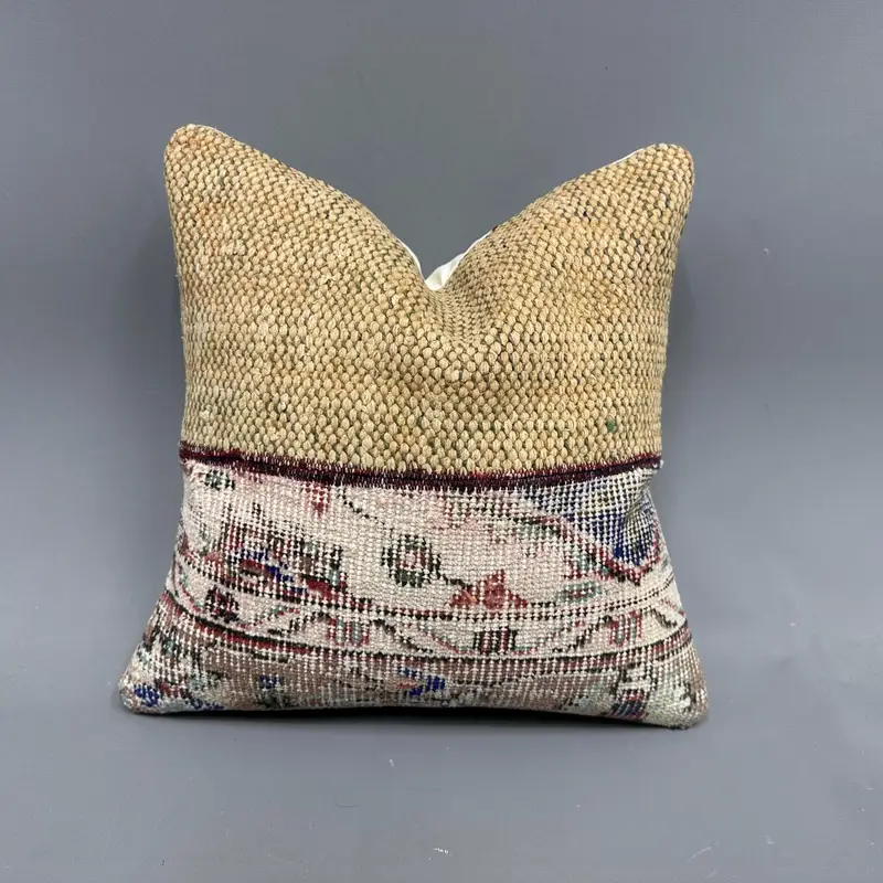Turuncu ve Yeşil Patchwork Kırlent, Vintage Kilim Minder