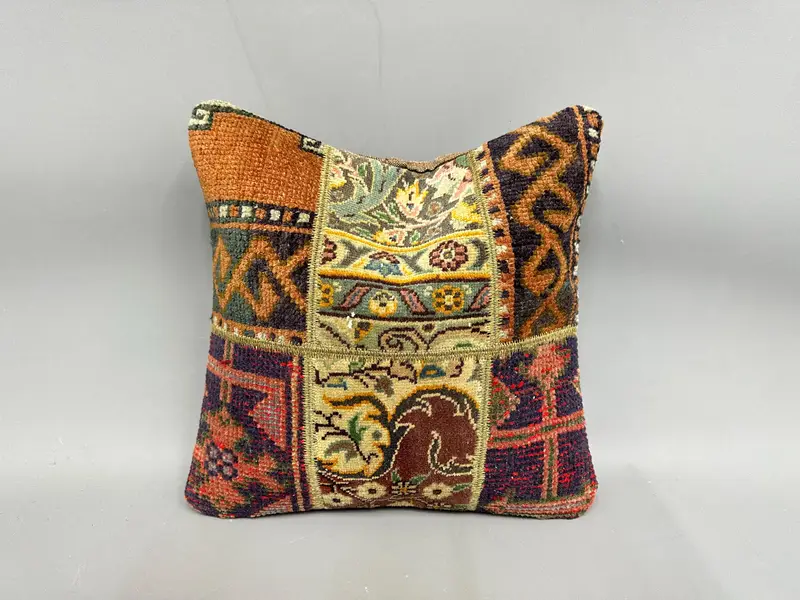El Dokuma Güneybatı Kilim Kırlent, Vintage Yeşil ve Turuncu Yastık