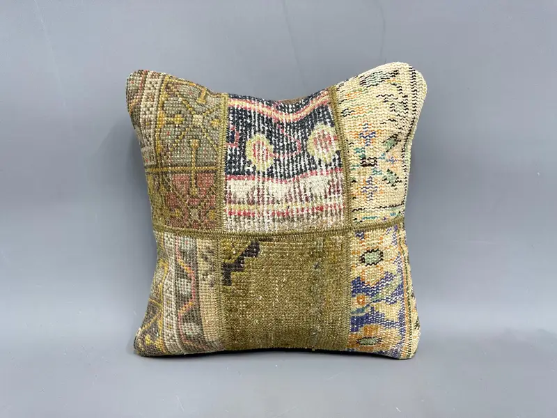 Turuncu & Kahverengi Patchwork Kırlent, Vintage Kilim Yastık