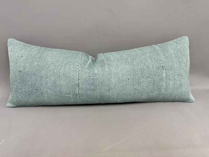 El Yapımı Yeşil Patchwork Kırlent, 16x42 İnç Vintage Dikdörtgen Yastık