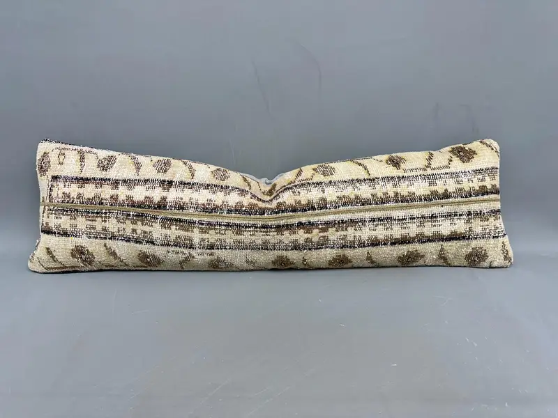 El Yapımı Bej ve Kahverengi Patchwork Kırlent, Vintage Dikdörtgen Yastık