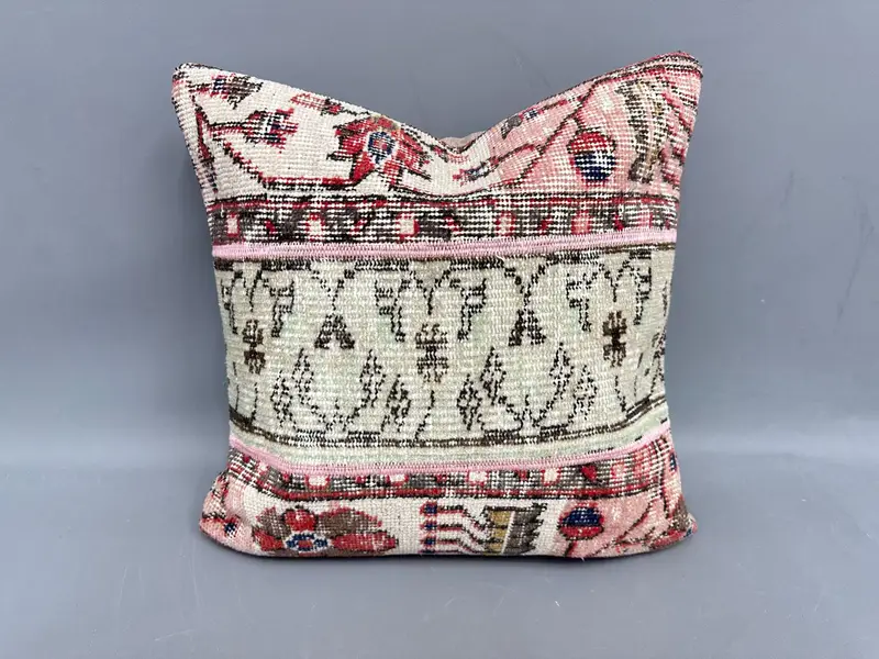 Bej ve Kırmızı Patchwork Kırlent, Vintage İşlemeli Yastık
