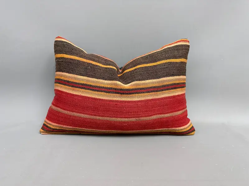 Kırmızı Çizgili Kırlent, Vintage İşlemeli Fermuarlı Kırlent