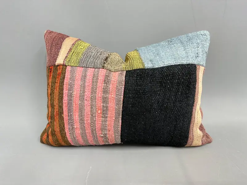 El Dokuma Türk Kilim Atma Yastığı, 20x28 İnç Vintage Keten Yastık