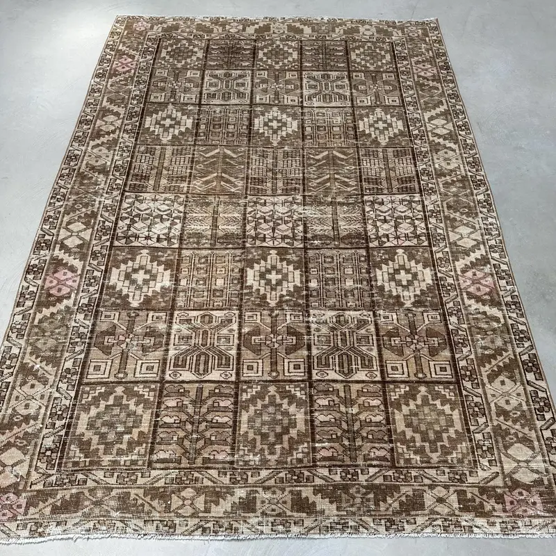 Kahverengi ve Bej Kareli Halı, 6,6x9,6 ft Şık Döşeme