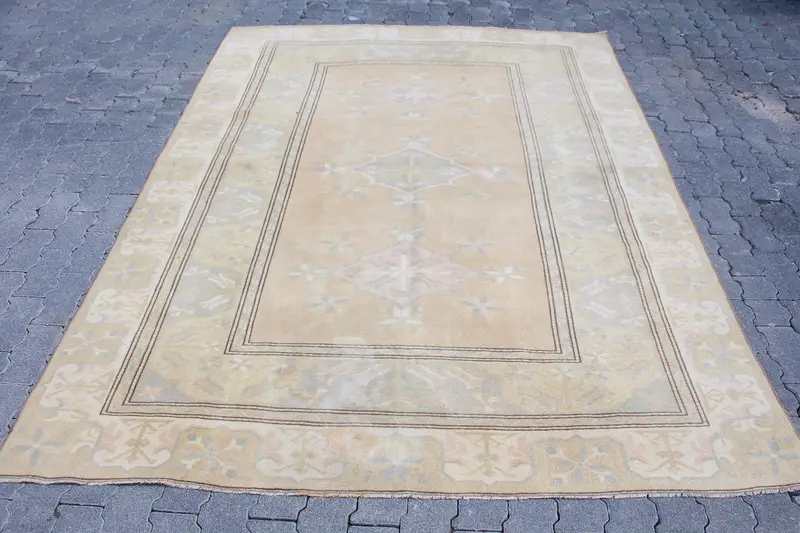 Bej ve Mavi Hayvan Baskılı Halı, 6,3x8,2 ft Şık Dekor