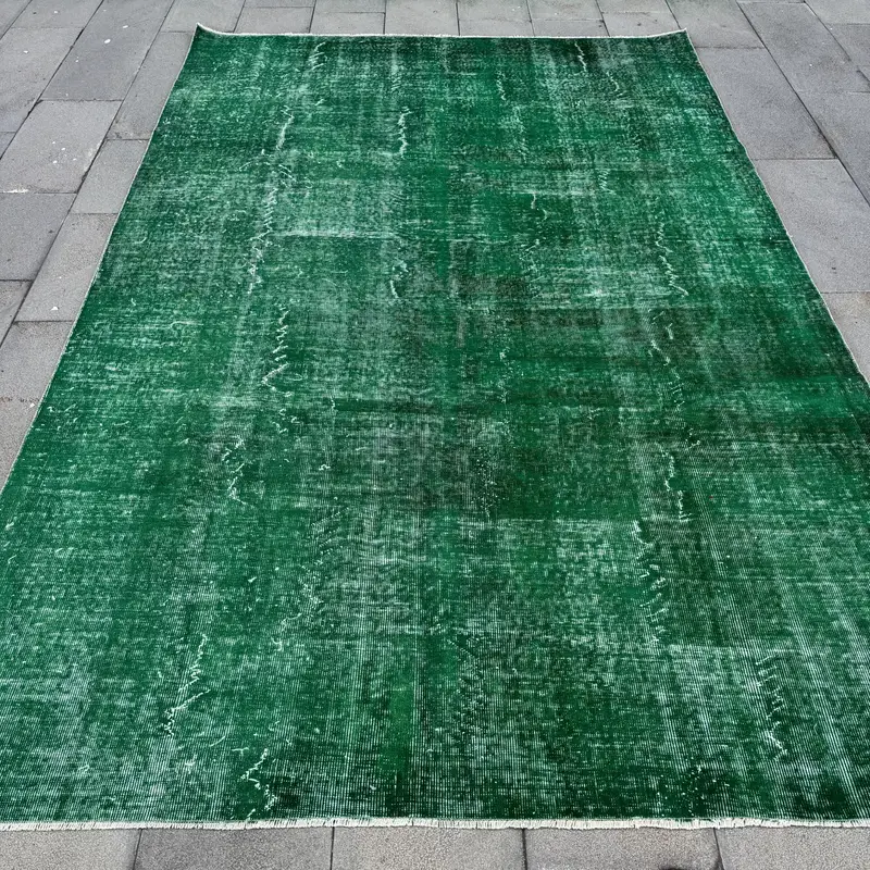 Zarif Yeşil Soyut Halı, 6,4x9,7 ft Şık Dekor