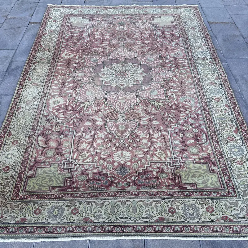 Kırmızı İkat Halı, Yeşil Desenli 6,2x9,4 ft