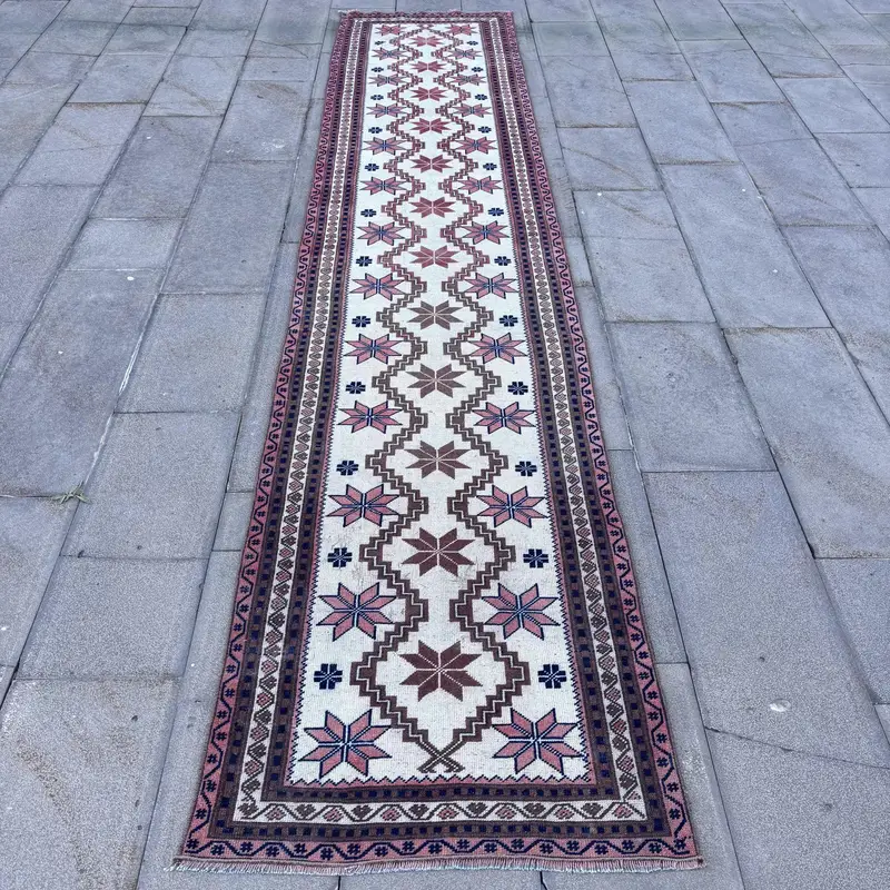 Zarif Bej ve Kırmızı Halı, 2,6x12,4 ft Hayvan Baskısı