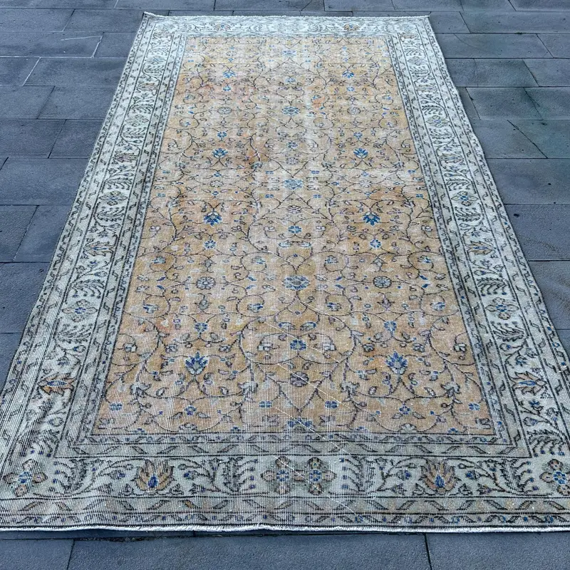 5,2x9,6 ft Turuncu Mavi Halı, Çiçek ve Geometrik Desenli